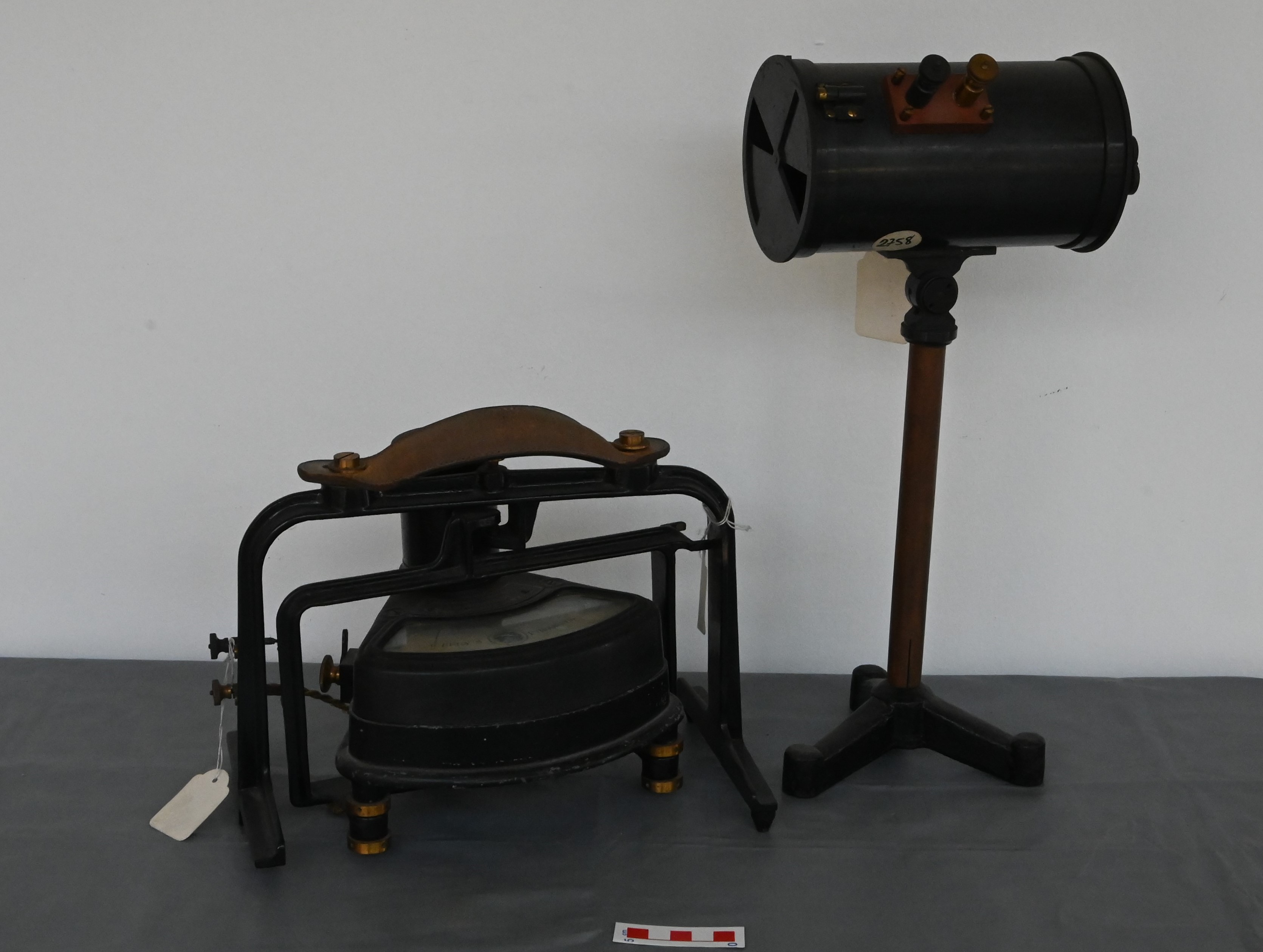 Come dimostrano il marchio in comune, le iscrizioni sopra, la tipologia di materiale e i numeri di inventario consecutivi, i due oggetti qui catalogati compongono un insieme unico: un pirometro di Fery. I pirometri sono strumenti che permettono di misurare temperature elevate di oggetti o ambienti speciali come forni, oggetti incandescenti, corpi in fusione. La costruzione e il loro funzionamento sono basati su molteplici principi. Alcuni, detti pirometri a radiazione totale, determinano la temperatura misurando la radiazione totale emessa dai corpi in una determinata direzione. Altri utilizzano soltanto la radiazione luminosa e sono detti pirometri a radiazione specifica o ottici (ad es., tipo Holborn e Kurlbaum). Il pirometro di Fery è del tipo a radiazione totale; essenzialmente è basato sulla legge di Stefan: "la quantità di calore irradiato da un corpo è proporzionale alla quarta potenza della temperatura assoluta del corpo radiante". Lo strumento in dotazione è costituito da due componenti: il pirometro vero e proprio, costituito da un involucro, all'interno del quale uno specchio concavo riflette la radiazione proveniente dalla sorgente sulla saldatura di una pila termoelettrica; e un milliamperometro (nell'inventario, così come nella targhetta metallica, definito come "galvanometro di Meylan-D'Arsonval"), tarato su tre scale, e graduato in gradi e da indicazioni attendibili. Lo strumento è stato acquistato nel 1911, è interamente in metallo, ed è stato rinvenuto in ottimo stato di conservazione