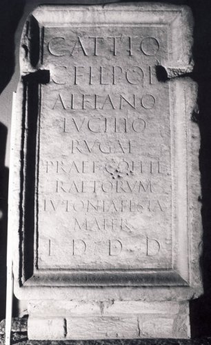 - NOTIZIE STORICO CRITICHE Si tratta di una iscrizione onoraria approntata per l'erezione della statua del personaggio menzionato, C. Attius Alfianus Lucilius Ruga, prefetto della II coorte dei Reti. L'iscrizione si data al II secolo d.C. sulla base dei caratteri paleografici (modulo tendenzialmente allungato) e del confronto con l'iscrizione riportata in CIL V, 3336 (inv. 28222, altro codice bene WLT-004600_WRC-897096).