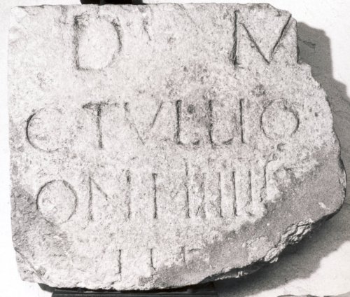 - ISCRIZIONI fronte - D(is) M(anibus) [s(acrum?)]. / C(aio) Tullio [Ursi]/ oni IIIIII [vir(o)]. / [- T]ulli[us ---] / ------. - Lettere posate maiuscole - Incisione - latino