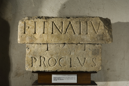 - ISCRIZIONI fronte - L(ucius) Tenatius / L(uci) f(ilius) / Proclus. - Lettere posate maiuscole - Incisione - latino