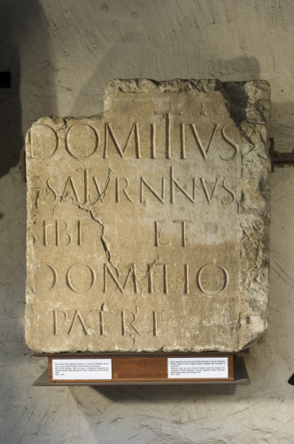 - ISCRIZIONI fronte - [-] Domitius / [-] f(ilius) Saturninus / sibi et / [-] Domitio / patri. - Lettere posate maiuscole - Incisione - latino