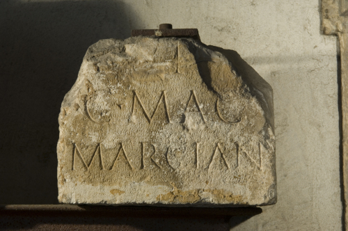 - ISCRIZIONI fronte - ------ / [---] M I [---] / C(aius) Mac[---] / Marcian[---]. - Lettere posate maiuscole - Incisione - latino