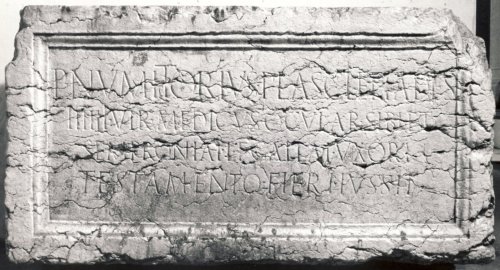 - NOTIZIE STORICO CRITICHE L'iscrizione ricorda il liberto P. Numitore Asclepiade, seviro e medico specializzato nela cura degli occhi. Il cognomen Asclepiades, di origine grecanica, era particolarmente diffuso tra i medici del mondo antico: si tratta di un nome teoforico, chiaramente derivato da quello di Adsclepius, dio tutelare della medicina. La formula onomastica, la posizione libertina e la professione inducono a pensare ad un'origine greca di P. Numitorius Asclepiades, provenienza confermata anche dagli altri tre medici attestati a Verona (CIG III, 6758; IG XIV, 2310a; CIL V, 3461): lo sviluppo della scienza medica in contesto romano si deve, infatti, agli stranieri, soprattutto Greci. I caratteri paleografici del testo indurrebbero a propendere per una datazione alla II metà del I secolo d.C. mentre il dativo arcaico in -ai orienterebbe per un adatazione entro la I metà del secolo, in accordo con la datazione proposta da Sartori: si mantenga pertanto valida una datazione generica al I secolo d.C.