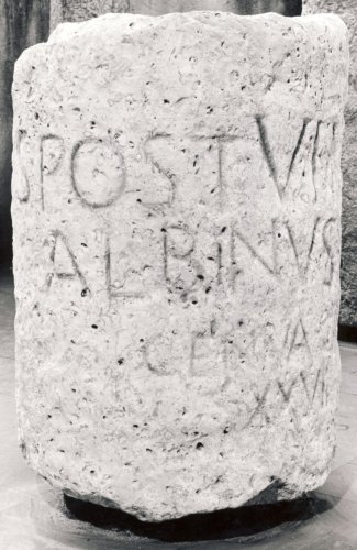 - NOTIZIE STORICO CRITICHE Complesse e controverse sono le questioni relative all'originaria collocazione e al materiale di produzione del miliare. Esso doveva essere collocato a XXVII miglia (km 39,6) da Cremona sulla strada per Verona, lungo la via consolare della Postumia, costruita inizialmente con finalità strategiche militari per congiungere Genova ad Aquileia, attraverso i centri maggiori di Piacenza, Cremona, Verona, Vicenza, Oderzo e Concordia. Dopo la formula onomastica del fondatore della via, S. Postumius Albinus, console nel 148 a.C., il miliare riporta la distanza (122 miglia = km. 180.5) che doveva intercorrere tra Genova e Cremona, dato confermato in seguito dallItinerarium Antonini (si veda CALZOLARI 1998). Gli itinerari antichi non descrivono, però, il tratto Cremona Verona, eccezione fatta per la Tabula Peutingeriana che lo ricorda fino a Bedriacum (odierna S. Andrea in Calvatone, si veda BOSIO 1970). A Cremona, dopo aver attraversato il Po, la via Postumia entrava nella X regio dirigendosi verso Piadena, poi a Calvatone e portandosi a Goito con un rettifilo (direzione nord-est) attualmente riconoscibile su terreno. Successivamente con un altro rettifilo la via Postumia doveva giungere a Villafranca e proseguire fino a Verona lungo il percorso dellodierna SS 62. Si ritiene che il miliare in questione fosse in origine posto lungo il tratto Calvatone-Goito, precisamente V miglia ad est dellantica Bedriacum (si veda BASSO 1986). La presenza del numerale VIIII in seguito sovraiscritto al nome Postumius, porterebbe alla formulazione di due possibili ipotesi: 1) uno spostamento della pietra già in antico, sulla base del fatto che proseguendo per VIIII miglia da Bedriacum si giunge presso il Mincio e dunque il miliare sarebbe stato ricollocato subito prima dellattraversamento del fiume (si veda BUCHI 1982); 2) il miliare non è stato spostato dalloriginaria ubicazione e il numerale VIIII andrebbe ad indicare la distanza del cippo dal Mincio, in prossimità di un punto dincrocio tra la Postumia e unantica strada militare che avrebbe congiunto Brescia con Mantova (si veda BASSO 1986 e CALZOLARI 1998). Ulteriormente controversa è linterpretazione del numerale XXVII (r. 4). Lipotesi tradizionale e successivamente accreditata da Calzolari (si veda CALZOLARI 1998) ritiene che XXVII si riferisca alla distanza del miliare da Cremona, in direzione di Verona. Calzolari sottolinea che XXVII miglia, sia conteggiate da Cremona che da Verona, andrebbero a designare una località tra lOglio e il Mincio. Il calcolo da Verona andrebbe però ad ubicare il cippo in un punto anonimo della via Postumia, mentre il computo da Cremona consentirebbe di ubicare il miliare in coincidenza di un diverticolo, scoperto da recenti indagini topografiche, che dipartirebbe dalla via Postumia in corrispondenza di Rodondesco, comune che si ritiene essere posto presso un cardo Mantuanus. Se cosi fosse, poiché il miliare è contemporaneo allapertura della strada, risulterebbe evidente che già nel progetto iniziale era previsto un raccordo con Mantova (si veda TOZZI 1972). La questione sulloriginaria collocazione del miliare di S. Postumio Albino è stata risollevata a seguito dello studio litologico del cippo che ha evidenziato lutilizzo di un calcare a rudiste proveniente dal Carso triestino. Dibattuta è la questione sul motivo per cui si sia impiegato un materiale di provenienza carsica in unarea ricca di materiali dalle buone caratteristiche litologiche quale quella del Veronese. A questo proposito si è cercato di considerare limpiego del miliare in pietra triestina ai confini occidentali della Venetia allinterno di un progetto di sistemazione viaria non limitato ad un ambito locale. Pertanto si potrebbe pensare che unofficina possa essere stata incaricata di fornire miliari anche al di fuori dellambito locale di produzione e ciò si giustificherebbe allinterno di unopera non di carattere locale ma relativa, se non a tutta la Postumia, almeno al tratto che attraversa la decima regio (si veda GROSSO-ZANCO 2003).