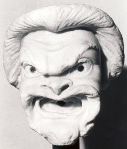 - NOTIZIE STORICO CRITICHE Molte identificazione delle maschere della commedia ci sono note tramite l'Onomastikon di Polluce, opera di età imperiale. Le maschere venivano molto spesso utilizzate nelle decorazione dei teatri, ma anche di giardini e di edifici vari, sia pubblici che privati. Il foro circolare entro la bocca fa pensare ad un ornamento per fontana.