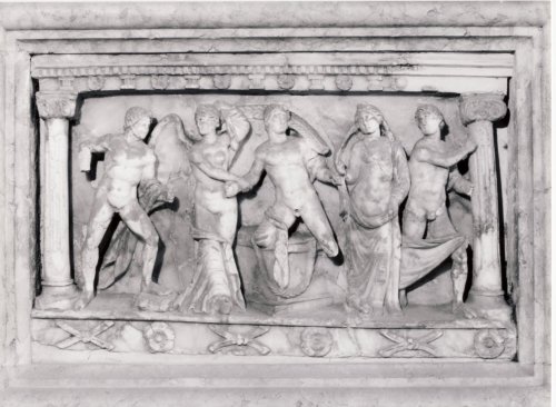 - NOTIZIE STORICO CRITICHE L'urna è considerata di produzione volterrana, vista la materia prima utilizzata. La scena è ripresa dal repertorio greco mitologico, probabilmente creata nella bottega del cosiddetto Maestro della Centauromachia, spesso influenzato da correnti artistiche ellenistiche. Anche per questo motivo la datazione va inquadrata intorno alla metà del II secolo a.C. L'ingresso di quest'urna al Museo Maffeiano nel 1739 da Volterra, come l'ingresso delle altre tre urne volterrane, sempre in alabastro, incassate nel muro del Pronao, è stata confermata anche da alcune lettere, fra le quali quelle che lo stesso Maffei scambiò con il cavalier Mario Maffei (ora conservate nell'Autografoteca Piancastelli di Forlì), pubblicate da Marchi G. P. (1985), in cui richiedeva in dono per il Museo veronese alcune urne etrusche.