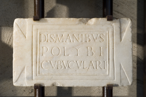 - ISCRIZIONI fronte - Dis Manibus / Polybi, / cubuculari(i). - lettere posate maiuscole tendenti alla scrittura attuaria - Incisione - latino