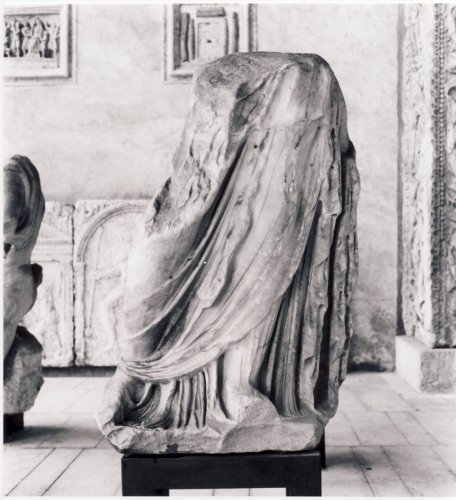 - NOTIZIE STORICO CRITICHE Statua di grandi dimensioni. Lo stile è vicino ai modelli ellenistici, come si può notare dall'effetto del panneggio e della trasparenza della veste. Per motivazioni stilistiche può essere datata intorno alla seconda metà del I secolo d.C.
