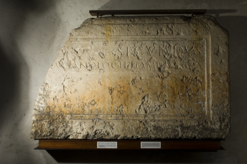 - ISCRIZIONI fronte - Q(uintus) Gaesius Secundus / Quinto Gaesio Lucano loci(!) et familiaribus. - Lettere posate maiuscole - Incisione - latino