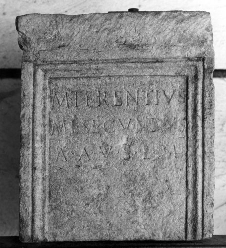 - ISCRIZIONI fronte - M(arcus) Terentius / M(arcus) L(ucius) Secundus / A(quis) A(ponis) v(otum) s(olvit) l(ibens) m(erito). - Lettere posate maiuscole - Incisione - latino