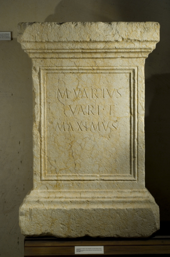 - ISCRIZIONI fronte - M(arcus) Varius, / Vari f(ilius), / Maximus. - Lettere posate maiuscole - Incisione - latino
