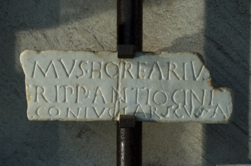 - ISCRIZIONI fronte - [ - - - ]mus hor(r)earius / [a]grip(ae) Antiocini / coniugi Arscusae. - Lettere posate maiuscole - Incisione - latino