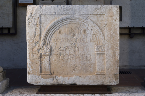 - ISCRIZIONI fronte - Genio / Iucunditatis, / Musis / Floraeq(ue) / sacrum. - Lettere posate maiuscole - Incisione - latino