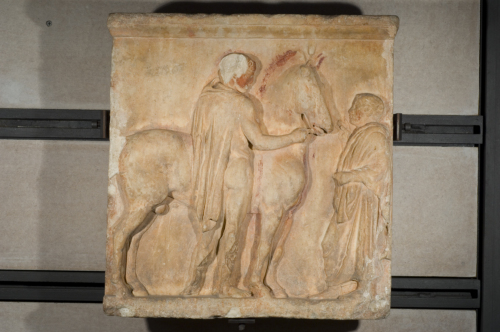 - NOTIZIE STORICO CRITICHE Luigi Beschi ha proposto di riconoscere nella figura del giovane col cavallo una replica o un'opera influenzata da uno dei due gruppi bronzei di cavalieri, opera di Lykios, figlio di Mirone, collocati sull'Acropoli di Atene, presso i Propilei (Paus., I, 22.4). Almeno nelle linee generali, il rinvenimento di basi che permettono di ricostruire attraverso i fori di incasso la posizione delle figure, appare confermare tale suggestiva ipotesi. Il ciuffo ornamentale del cavallo indica l'assimilazione di un uso di derivazione orientale, come indicano il sarcofaco c.d. di Alessandro e il mosaico di Alessandro, oltre ai cavalli di S. Marco a Venezia.