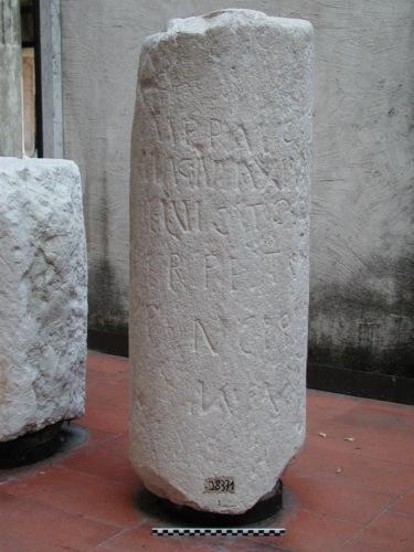 - NOTIZIE STORICO CRITICHE Il miliare si può datare al periodo compreso tra il momento in cui l'usurpatore Massimo proclamò Augusto il figlio Vittore (384 d.C.), e il giorno della sconfitta e uccisione di Massimo da parte di Teodosio (28 agosto 388).