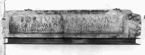 Fortunae fànum, / ab C(aio) Vìbio Vàro patre inchoatum, / Q(uintus) Caesius Macrinus perf