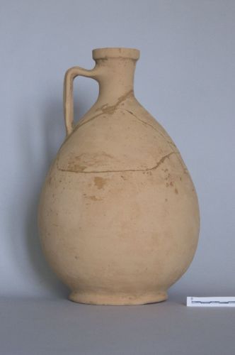 orlo a fascia, collo cilindrico, ansa a nastro, corpo ovoide con diametro massimo poco sopra il bassissimo piede ad anello
