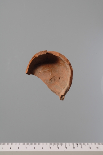 serbatoio troncoconico rovesciato con base leggermente concava, delimitata da tre circonferenze concentriche impresse. Al centro della base è presente il marchio di fabbrica FORTIS a lettere rilevate e apicate. Corpo ceramico arancio chiaro depurato e ingobbiato.