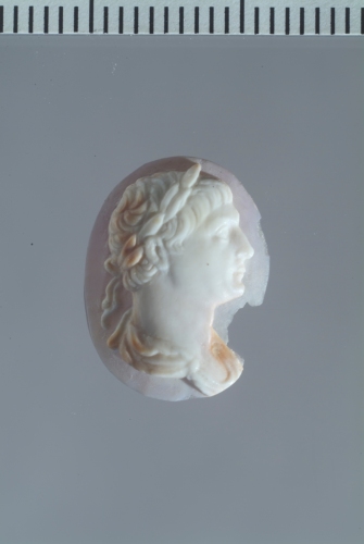 - NOTIZIE STORICO CRITICHE Il cammeo è presente nell'Inventario Verdara, n. 19 (Nardelli 1999, p. 83). Stile e materiale fissano la cronologia al XVI secolo d.C., anche se l'immagine dell'imperatore è chiaramente ispirata all'iconografia antica, in particolare monetale.