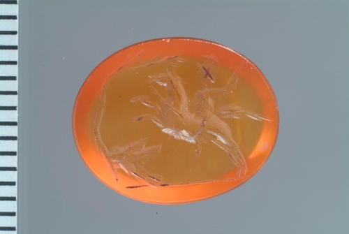 corniola arancione ovale piana; intaglio