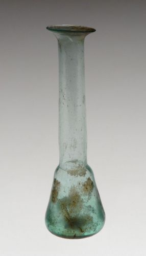 Labbro estroflesso, orlo tagliato e arrotondato, lungo collo cilindrico con strozzatura alla base, ventre campaniforme, fondo piano