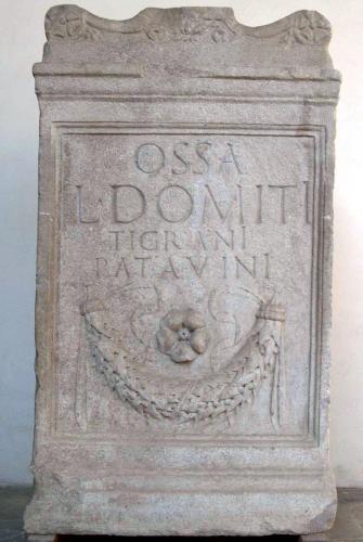 dedica a Lucius Domitius Tigranus Patavinus (ara funeraria ara funeraria parallelepipeda )