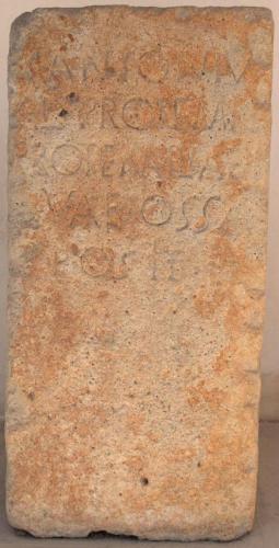- ISCRIZIONI nella parte superiore del cippo - G. Antoniu[s] / C. l. Protemio / Protemillae f. / suae ossa / posit - lettere capitali apicate - a solco - latino