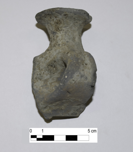 a profilo articolato con ansa con sopraelevazione cilindro-retta a sommità espansa e piatta e fusto tozzo