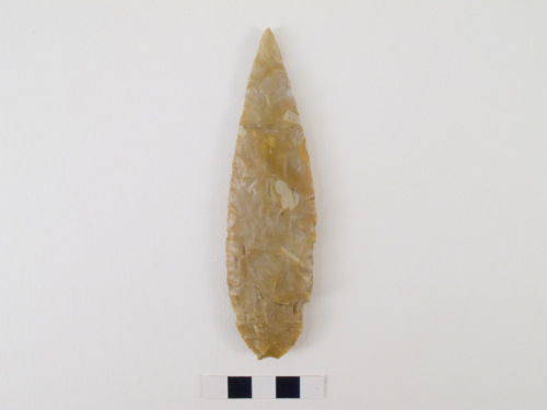 pugnale a codolo a ritocco piatto, bifacciale e coprente; il codolo inizia con due incavi asimmetrici appena accennati; rientra nel tipo 4b De Marinis C.F./ Pedrotti A.L. 1997 ("pugnali a base semplice e a peduncolo semplice, forma a foglia di salice e varianti").