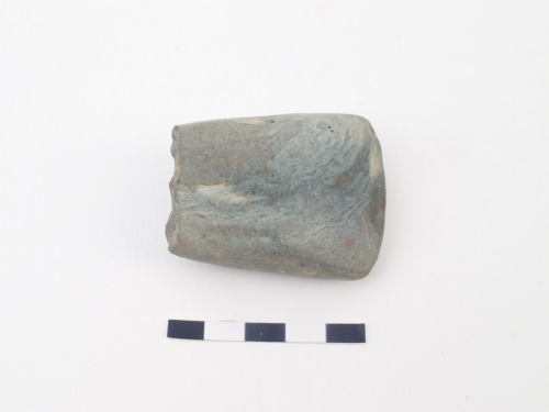 ascia trapezoidale con margini laterali sub-rettilinei, taglio regolare leggermente ercuato e lisciato; su una sola delle due facce si conservano le tracce della picchiettatura