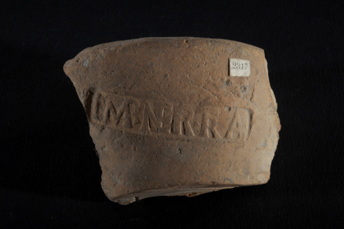 Orlo di anfora Dressel 6B, svasato e inclinato verso l'esterno; l'impasto, di colore rosa scuro (7.5 YR 6/4) è molto duro, ruvido al tatto, con inclusi micacei, bianchi e neri.