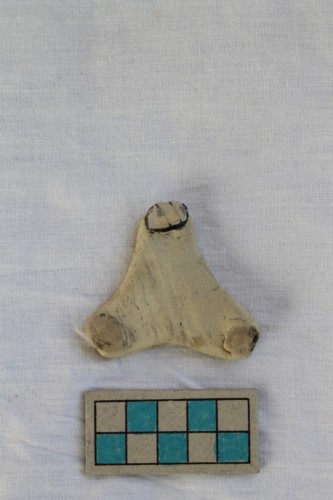 Distanziatore di cottura di forma irregolarmente triangolare, caratterizzato da una punta rilevata posizionata in corrispondenza di ogni vertice. Il treppiede era funzionale alla cottura delle ceramiche impilate all'interno del forno che, in assenza di un elemento separatore e per lo scioglimento del rivestimento vetroso, si sarebbero saldate tra loro.