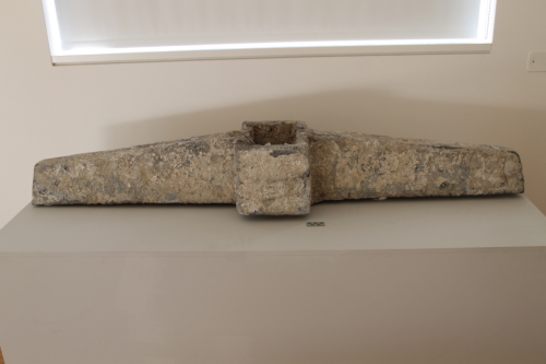 Ceppo orizzontale formato da una verga di piombo a sezione quadrangolare, che si allarga al centro per ospitare un incavo quadrato funzionale al fissaggio dell'elemento verticale dell'ancora.