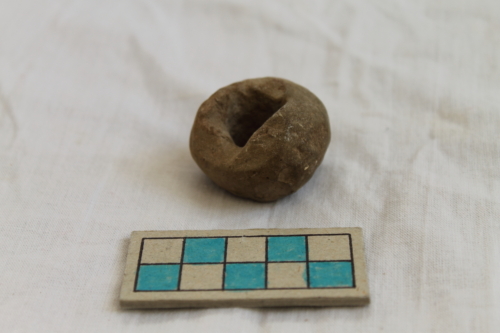 Peso di forma irregolarmente sferoidale, caratterizzato al centro da un foro circolare passante funzionale alla sua sospensione sulla parte inferiore della rete da pesca.