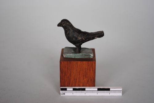 Statuina di volatile (merlo?), stante, ritto sulle zampe, con testa protesa in avanti.