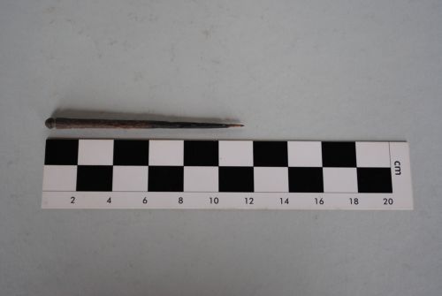 Ago non da cucito, forse crinale, con stelo a sezione circolare, terminante a punta da un lato e dall'altro in un globetto.