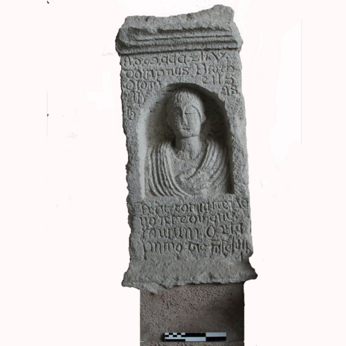 Il cippo è a forma di parallelepipedo. Contiene al suo interno una nicchia in cui si individua il defunto ritratto con la toga. Il volto presenta un ovale pieno, grandi occhi, un naso piccolo e diritto, appena percebile ed un mento rotondo. Dalla toga ne emerge la mano destra. L'iscrizione presente è successiva.