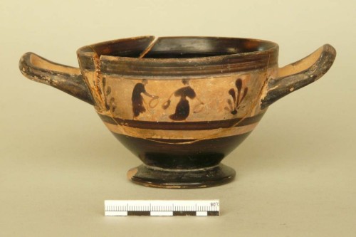 - NOTIZIE STORICO CRITICHE le figure sono tracciate in maniera tanto sommaria che è difficile distinguere quelle femminili da quelle maschili. Attribuito per forma, misure (si tratta di uno skyphos di dimensioni molto ridotte) e resa della decorazione al gruppo di Lancut da Favaretto 1982 (con bibliografia per esemplari confrontabili)