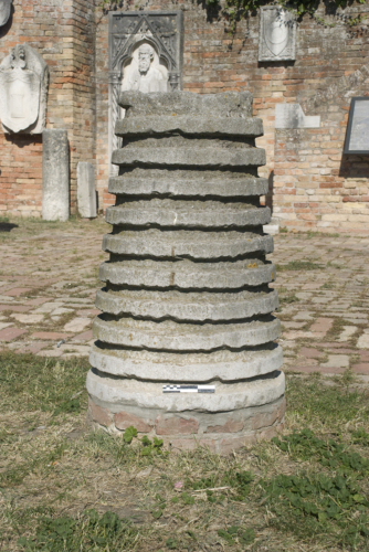 Tronco di cono ornato da undici anelli a sezione quadrangolare, progressivamente aggettanti