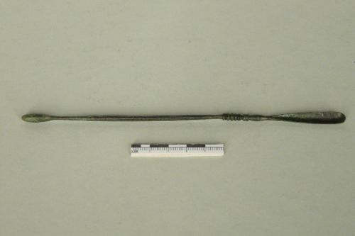 spatola concava con modanature all'attacco e stelo zigrinato a sezione circolare leggermente rastremato in corrispondenza dell'estremità ad oliva.