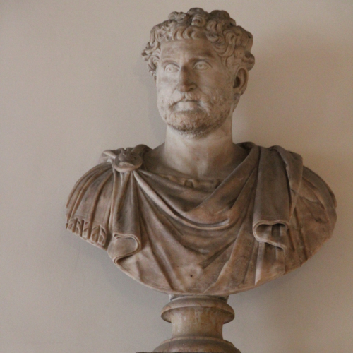 Il busto ritrae un uomo maturo, dal volto il cui ovale è schiacciato, rivolto verso destra e inclinato verso l'alto. Il viso è descritto da una fronte stretta, ha grandi occhi con iridi e pupille segnate, un naso aquilino e labbra piccole e sottili. Folti baffi e barba campiscono lo spazio tra naso e mento. I capelli sono corti e ondulati, tenuti in un'acconciatura scomposta. La figura indossa una corazza, coperta dal paludamentum, allacciato sopra la spalla destra.