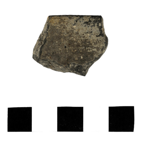 frammento di orlo diritto con labbro arrotondato pertinente ad una forma non determinabile (scodella?); superfici lisciate; impasto semifine di colore grigio chiaro