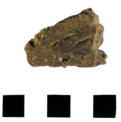 frammento di parete carenata con decorazione costituita da tacche oblique allineate a formare un nastro orizzontale; superfici lisciate; impasto grossolano di colore grigio chiaro