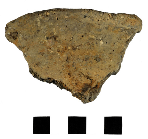 frammento di orlo con labbro leggermente appiattito, pertinente ad un vaso biconico di grandi dimensioni; superfici lisciate; impasto grossolano di colore grigio-beige