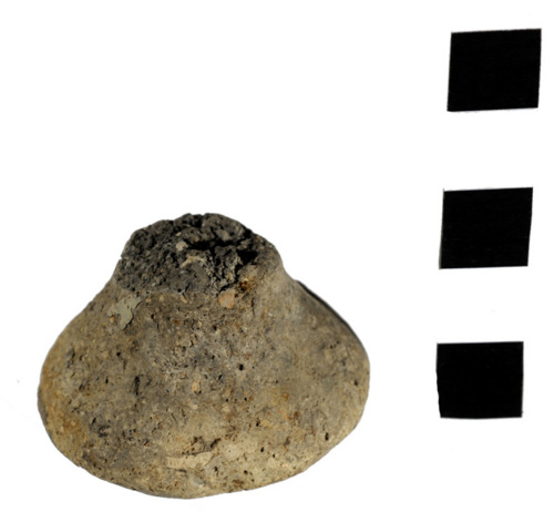 rocchetto con estremità allargata a profilo troncoconico e base leggermente convessa; le superfici rozzamente lisciate; limpasto è grossolano e di colore grigio scuro
