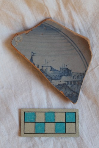 maiolica berettina "a paesaggi" (scodella/ frammento maiolica )