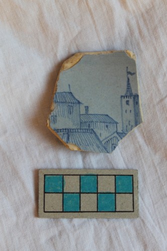 maiolica berettina "a paesaggi" (scodella/ frammento maiolica)