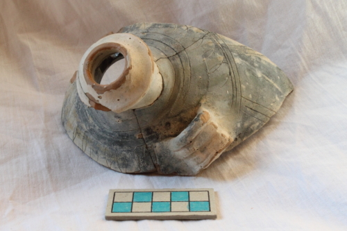 - OGGETTO fiasca/ 5 frammenti ricomposti ceramica graffita