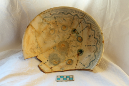 ceramica ingobbiata e dipinta sotto vetrina (scodellone/ ricomposto da 10 frammenti ceramica ingobbiata )