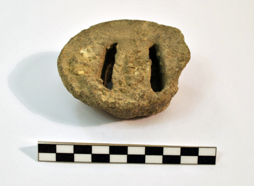 Elemento di forma ovale con due fessure, oblunghe e parallele.